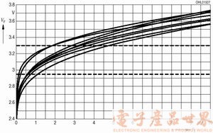 图7示出几个随机选择的白光LED(图中的虚线)产生2mA~5mA范围的正向电流,进而产生不同强度的白光。特别是Y坐标在该区域有很大的变化(见图5),这导致照明显示器偏离真实的色彩。另外,由于LED具有不同的光强,导致不均匀照明。另一个问题是所需的最低电源电压。为保证LED工作,3V以上的电压是必须的。低于此电压,几个LED可能完全保持暗的。