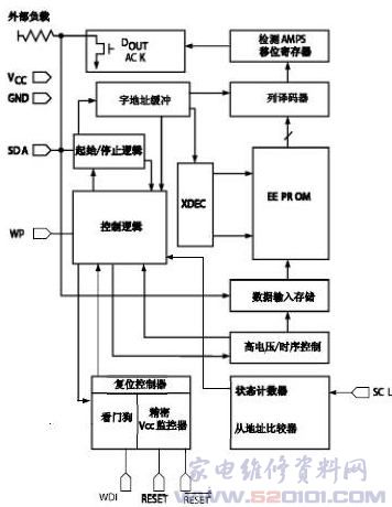 CAT1163的存储器构造成16字节的页。除此之外,写保护管脚WP和VCC检测电路提供的硬件数据保护功能可防止在Vcc降到低于复位门槛电压或上电时Vcc上升到复位门槛电压之前对存储器的写操作。它采用8脚DIP封装或8脚SOIC封装,电压范围为2.7V~6.0V。