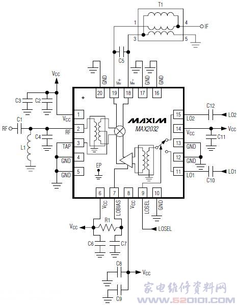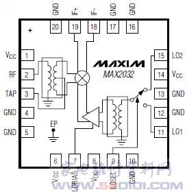 该MAX2032的管脚与MAX2039/MAX2041兼容的1700MHz至2200MHz混频器,使该系列无源上变频器和下变频器非常适合应用在采用相同PCB布局用于两个频段。该MAX2032可在一个紧凑的20引脚thinQFN封装(5mm x5mm)带裸焊盘。电气性能是保证在扩展-40°C至+85°C温度范围。