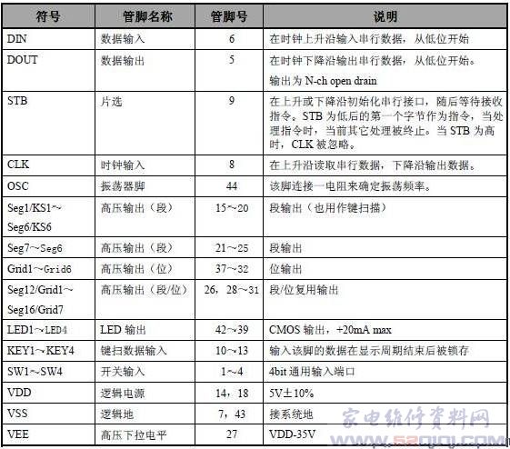 概述:SM16312是三合微科生产的一款VFD控制驱动集成电路。SM16312是一种真空荧光显示器(VFD)控制器驱动在1/8到1/16责任的因素。十段输出线,6grid输出线,5段/栅输出驱动线,按键扫描,一个显示内存,IC控制电路都在养一个芯片内。这是引脚到引脚与UPD16312(NEC)兼容。这SM16312是一种理想的单芯片微型计算机的外围设备。它采用QFP44 的封装形式。