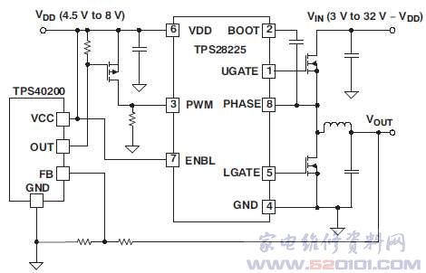 针对较低栅极驱动器,驱动器的0.4欧姆阻抗可使功率MOSFET的栅极低于阈值电平,以确保高dV/dT相位节点转换时不会出现贯通电流。内部二极管充电的自举电容器使器件能在半桥配置下使用N通道MOSFET。TPS28225提供的三态脉宽调制(PWM)输入与TITPS40091等所有多相控制器相兼容。断电模式则能使负载免受反向输出电压的影响。