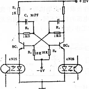 图46—8中(a)所示电路,为光电耦合器控制的双稳态输出开关电路,它的特点是由于光电耦合开关接在两管的发射极回路上,故能有效地解决输出与负载间的隔离问题。