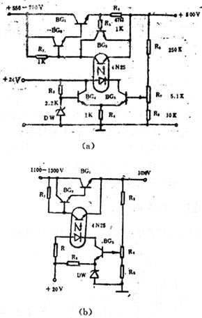 图46—10中的(a)与(b)所示的电路,就是利用光电耦合器的高压稳压电路。