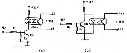 在图中,当无脉冲信号输入时,三极管BG处于截止状态,发光二极管无电流流过不发光,则a、b两端电阻非常大,相当于开关“断开”。当输入端加有脉冲信号时,BG导通,发光二极管发光,则a、b两端电阻变得很小,相当于开关“接通”。故称无信号时开关不通,为常开状态。