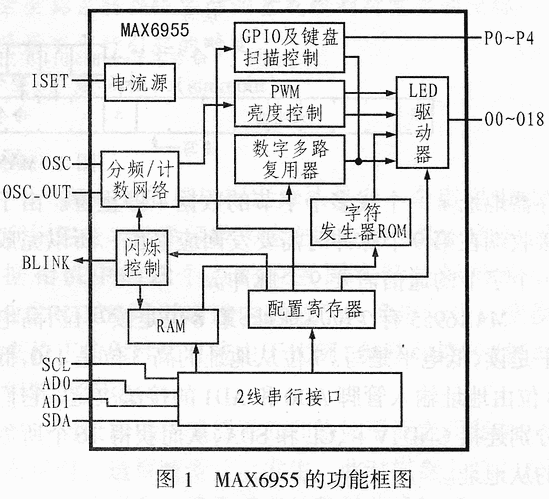 1、MAX6955的功能框图及概述
