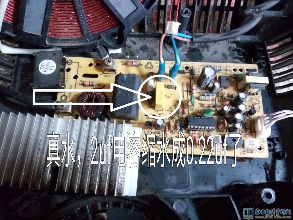 接修一台半球HK-2000电磁炉,故障表现为不加热,拆开检修,其MCU型号是JW28P50K,通电试机,可以听到呲呲的检锅声,电流表观察,电流忽大忽小,就是不能进入正常工作,测量电压都正常,测量MCU支路,当测量可调电阻时,一端电压为120mv,一端为2mv。显然不对,换220欧电阻,故障排除,此电磁炉做工一般,不过触摸屏挺灵敏的。