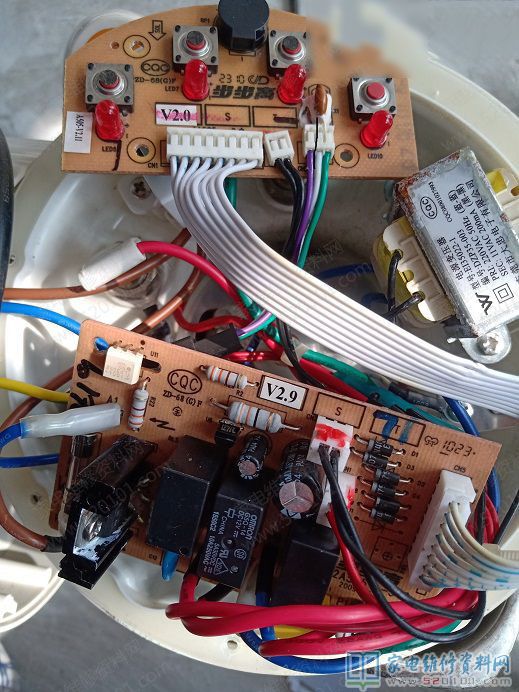 装机放上花生,打算打一杯花生浆犒劳自己一下,启动机器,听着机器内部加热烧水的声响,美滋滋的等着,结果事与愿违,花生浆打到了一半,机器突然声息俱无,指示灯也不亮了,又出故障了。那个无奈,只有重新拆机检查。此机用了一个11v变压器供电,测初级电压正常,次级没有11v交流电,拆下测量初级开路,变压器坏了。