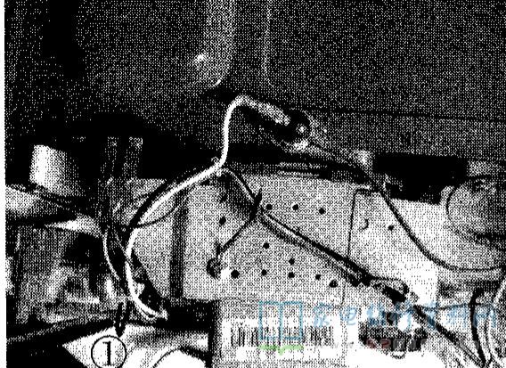 例2:一台格兰仕750BS微波炉,食物还未烹熟就自动停机。分析检修:停机后检查各开关的状态,发现热熔断器处于断开状态。该热熔断器紧贴在炉腔顶部,如图1所示。热熔断器断开说明炉腔内温度过高,其常见原因有:1.冷却风扇损坏;2.进排气孔堵塞;3.空气导管堵塞。首先检查冷却风扇,正常;接着检查空气导管,发现其空气流通不畅,清理管内杂物后试机,故障排除。