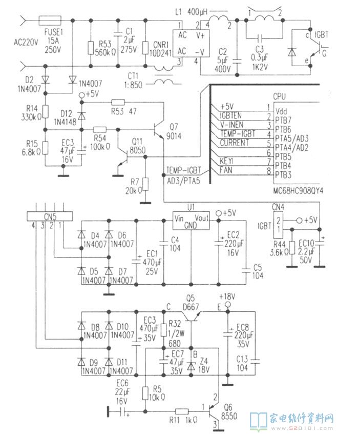 另外:本检修方法也适用于检修美的MC-SY1811、MC-SY183B、MC-PF18C-M、MC-EF197等电磁炉出现同故障时参考。