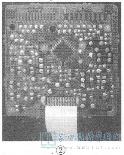 把电脑板拿来仔细研究,工作原理大概是连接点CN7通过导电橡胶到液晶显示屏上显示微波炉工作状态,连接点CN8通过导电橡胶到薄膜按键,接收键盘的按键指令,连接点CN6通过扁电缆连接到电源控制板,从电源控制板.上获取电脑板所需供电,同时把键盘指令通过CPU处理后,输出到电源控制板上驱动继电器,来控制微波炉工作。