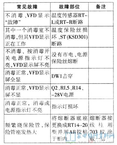 以左室为例:接通电源单片机开始工作,按下左电源开关LPK(自锁开关),S8F94544的④脚变为高电平,Q2导通RL5吸合,VFD灯丝得电、Q4导通,左电源指示灯亮,左消毒室VFD显示屏全显,过5秒后显示当前左室内温度,按下左“消毒”开关,消毒指示灯亮,VFD显示“工作”,S8F9454的18与19脚输出高电平,Q7、Q8导通,RL1、RL2得电吸合,消毒柜开始加温消毒。当左柜内温度达到130℃时,S8F9454的18脚变为低电平,Q7截止RL2断开,柜内剩下下方3个加热管工作,延时10分钟后19脚也变为低电平,消毒结束VFD上“工作”灭,消毒指示灯灭,VFD只显示消毒室内温度,十分钟后RL5断开VFD灯丝电源。当两个窒都要消毒时,一个消毒完毕自动开始另一个消毒。当温度超过150℃时MSD301断开,加热管断电。当温度超过165℃时温度保险丝熔断加热管断电。