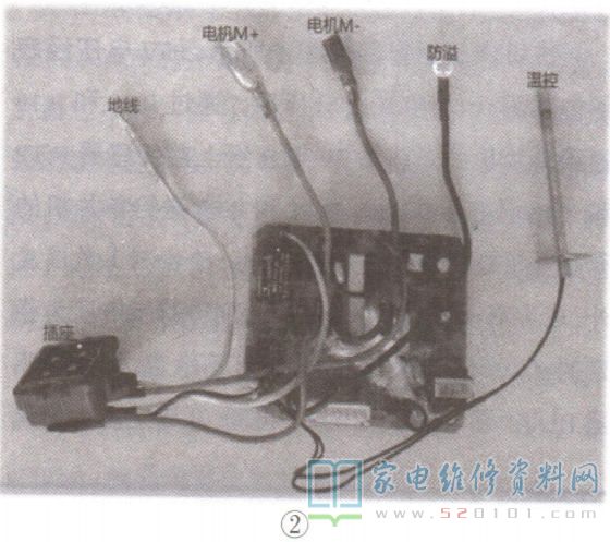 拆开机器发现,温控、防溢等控制电路与电源板合成一体,如图2所示。