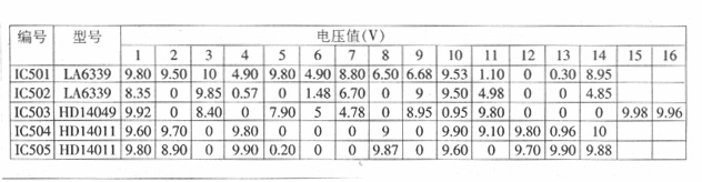 打开机壳看到保险丝完好,注意:在开机状态下最忌用万用表随意检测,否则极易造成误触发使大功率达林顿开关管烧毁(管子的型号是2SC4119,此管很难购买)。检修时先关掉风扇,如听到“吱、吱”声,说明振荡部分正常。检测以下电压,电阻R561取样电压应为25V,电阻R502端应为6.8V,电阻R504端应为5.9V,电阻R546端应为8.9V。从修理过的多台机器看,多为电阻R502、R504的阻值变化使R502取样电压低于R504取样电压,而使电路不能翻转,整机不能工作。只要在电阻R504上并联一只2kΩ左右电阻使R504取样电压略低于R502端取样电压,整机就能恢复正常。附表为电磁炉正常时各集成块的引脚电压值(供参考)。也请高手赐教如何用IGBT管子代换大功率达林顿开关管2SC4119。