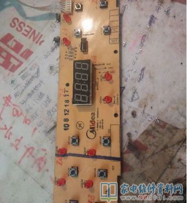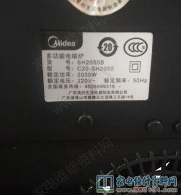接修一台美的SH2050B电磁炉,客户自述说通电后风扇转一会然后就沒反映了,在我维修部,没插电就直接拆开了。打开一看主板上满是鬻锅后的痕迹,就对客户说没什么维修价值了。客户就说能修好就让我自己用吧,送走客户通电试机风扇转一会停上,没有蜂鸣音,好半天才发现是按键全坏了,更换后故障排除。