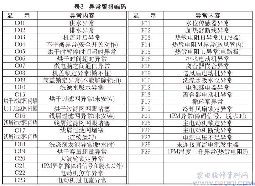 洗衣机故障代码