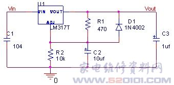 LM317电源电路本身具有60dB以上的输入纹波压缩度,采用下图可以进一步减小纹波,得到令