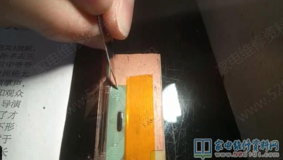 针对海信LED32K20JD液晶电视,故障表现为反应慢且灰屏,测量了屏上的几个的电压都正常,是这款屏的通病,飞线完美解决,整个过程如下图所示。