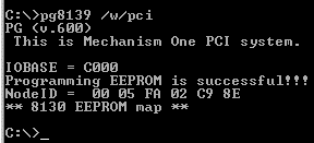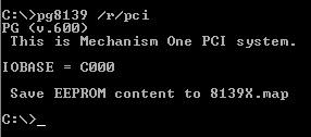 三、保存后,再回到MS-DOS模式下,使用PG8139 /W/PCI 将修改好的8139X.MPAP文件写入到网卡的串行芯片中。注意:由于PG8139文件在写入时需要寻找默认的文件名,因此不可将8139X.MPAP修改为其它文件名。