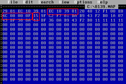 二、运行16进制编辑软件(UltraEdit)打开保存的8139X.MAP文件(由于此文件为文本文档,因此使用edit命令也可修改-在DOS状态下,输入命令:EDIT 8139X.MAP),在第一行的数据中,从EC开始的4个字节为厂商信息,必须被改为57 FF 14 57 ;从第一行倒数第二字节00开始至下行的16个字节为: 00 E0 4C 00 00 0F 10 8D C2 F7 01 88 B9 43 F2 B0 1A 07 ;其中,00 E0 4C 00 00 0F就是网卡的卡号,其中E0要改成05,4C 00 00 0F要修改为(上面提供的卡号):01 B4 A4 FA。 ;此外,卡号末尾的第一个字节需改为14。以上的修改完成后存盘退出。