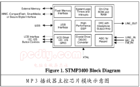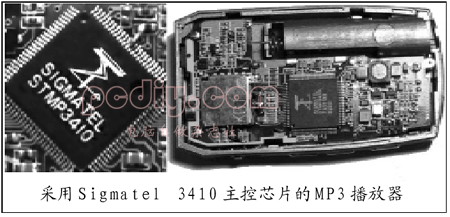 目前市面上的MP3播放器的主控芯片主要有ECT skylark、Ti tms320vc5409a、Micronas mas3587f、Telechips TCC730以及Sigmatel STMP3400/3410。其中Sigmatel的芯片因为成熟度高、省电、稳定并可完美地播放高码流的MP3音乐而为人们所接受,所以业界很多MP3播放器都采用了Sigmatel解决方案。除了STMP3400/3410外,还有一些闪盘型MP3采用Sigmatel的STMP1342。