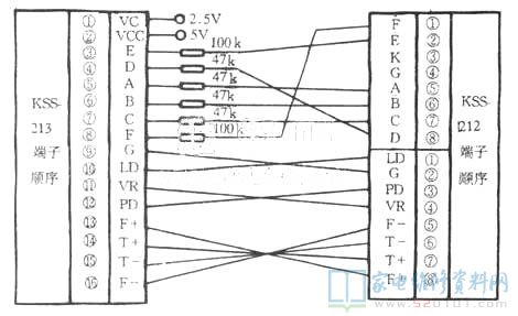 2、三洋激光头上连接主轴、进给电机和限位开关的排线顺序与索尼213激光头不同,厂家已将排线作了改动(见图1所示)。