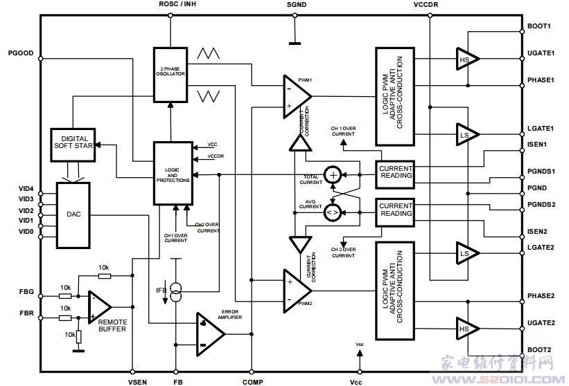 OSC/INH/FAULT:通过外部接电阻,改变振荡器开关频率。