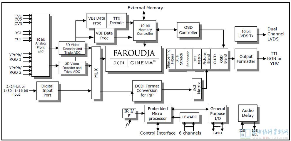 ●可以输出两路LVDS信号,支持LCD和PDP;