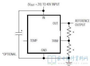 提供TEMP输出,其输出电压正比于管芯温度,所以非常适合于多种温度检测类应用。还提供TRIM输入,可通过电阻分压网络对输出电压进行精细的微调。低温度漂移和低噪声特性使这些器件非常适用于高精度A/D或D/A转换器。
