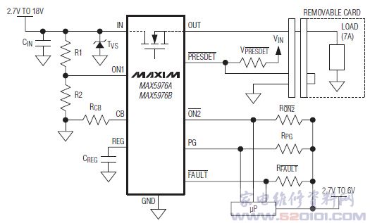 概述:MAX5976A采用16引脚、5mm×5mm、TQFN-EP封装,工作在-40°C至+85°C温度范围。为2.7V至18V电源电压的保护电路,提供浪涌电流控制和短路启动过程中检测功能。在正常操作中,设备提供断路器过载及短路情况下的保护,断路器的功能使负载电流超过断路器的限制时断开负载。这些器件在出厂时进行校准,提供精度为± 10%准确的过流保护。发生故障期间,进入自动重试模式