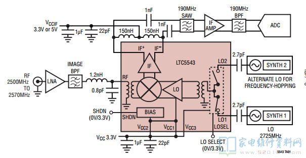 概述:LTC5543 采用20引脚(5mmx5mm)QFN封装,2.3GHz 至 4GHz、高动态范围。
