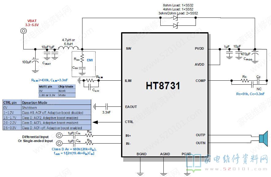 三、HT8731典型应用电路