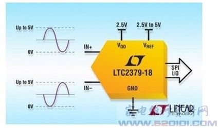 概述:LTC2379-18采用小型3mmx4mmDFN和MSOP-16封装,2.5V电源工作,仅消耗18mW功率,支持1.8V至5V的I/O电压。为串行 18 位、1.6MSPs SAR 模数转换器 (ADC) ,该器件在支持全差分 ±5V 输入范围的同时,也实现了无与伦比的 101dB SNR 和 -118dB THD。具 ±2LSB 的最大 INL,在 -40ºC 至 125ºC 的温度范围内无漏码且性能规格有保证。以 2.5V 电源工作,仅消耗 18mW 功率。 ADC 的速度范围为 250ksps 直至 2Msps。在 ADC 驱动器上无需负电源,从而极大地降低了信号链路的总体功耗。该器件的停机模式在空闲状态时可将功耗进一步降至 1.25uW。真正无延迟工作实现了准确的单次测量,甚至在很长的空闲周期后,也没有最低采样率要求。