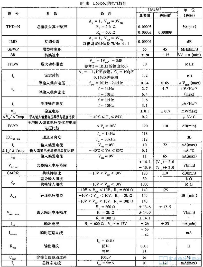 LM4562的CMRR(120dB)、PSRR(120dB)、Vos(0.1mV)等指标也很突出,为放大器提供了优秀的直流特性。它还具备输出短路保护功能。