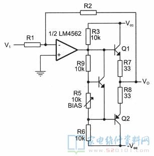 LM4562可广泛应用于高品质音频放大、高保真前置放大器、高保真多媒体、高品质唱头前置放大器、高性能专业音频、高保真均衡与分频网络、高性能线路驱动器、高性能线路接收器、高保真有源滤波器等。图3~ 图8为LM4562的一些典型应用。