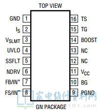 16PIN TS,顶部MOSFET栅驱动回程接点。接顶部MOSFET源极。