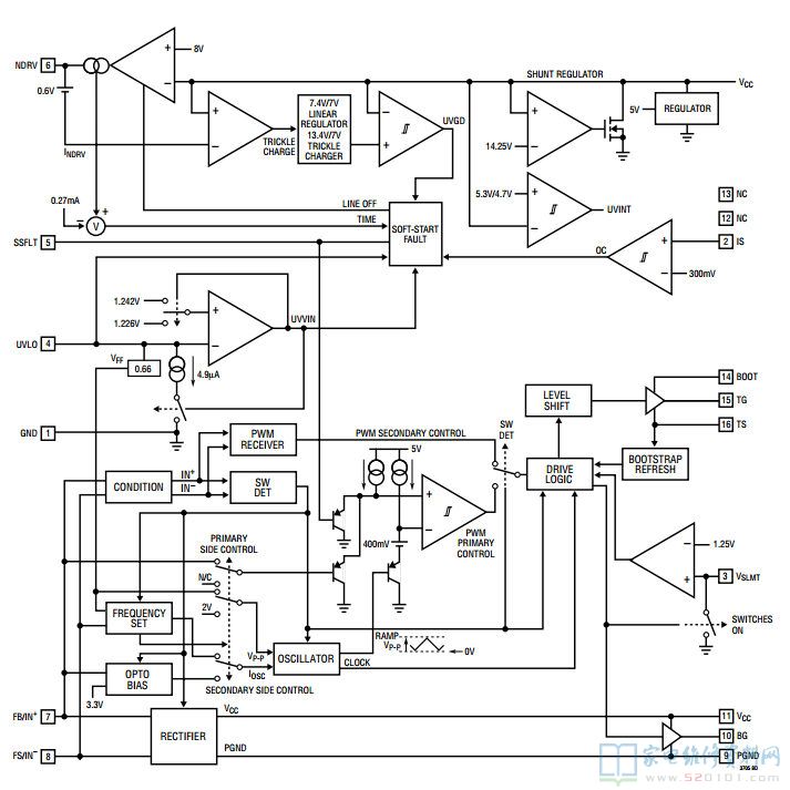 2)片内整流器可自起动,可省去辅助绕组驱动。