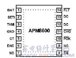 概述:APM8600采用14脚封装,提供高达28V的过压保护,能自动选择USB或直流输入,最大快速充电电流为1A,USB输入充电电流则根据USEL输入的逻辑电平设定为100mA或500mA。