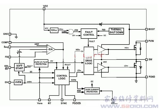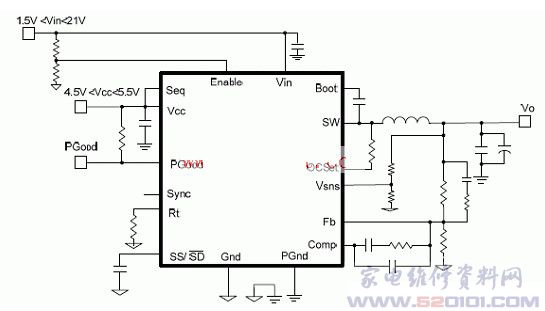 概述:IR3859开关频率从250kHz到1.5MHz可编程,效率大于95%,输入电压从1.5V到21V,输出电压从0.7V到0.9xVin.可连续提供9A负载电流。