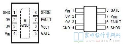 在正常工作时仅消耗125uA电流,并有一个停机引脚用来启动和禁止外部MOSFET,以及用来提供一种10uA的小电流停机状态。一个故障输出指示栅极状态。利用停机引脚,两个于一种新颖的应用中可配置为在两个电源之间进行选择。如果反向保护不需要,那么仅需要单个外部MOSFET。