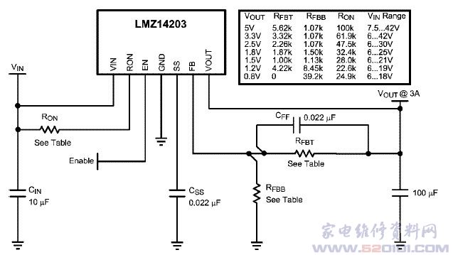 概述:LMZ14203采用单列7脚封装,最大输入电压42V,具有极好的电源转换效率,线路和负载调以及输出精度。输入电压6V-42V,输出电压低至5V。