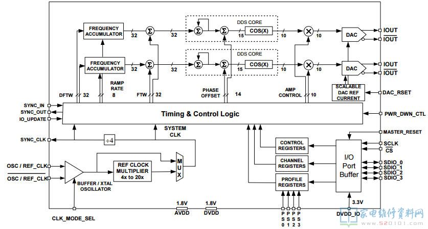 三、AD9958内部方框图