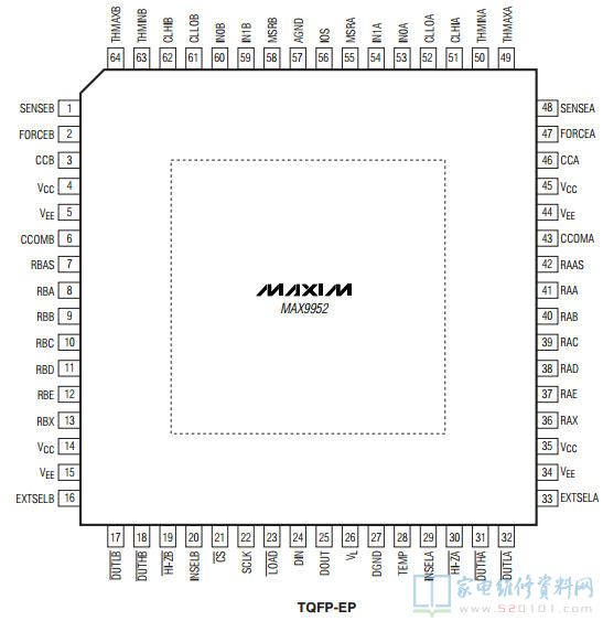 MAX9952D在FORCE_和SENSE_之间具有一个集成的10kΩ加载感应电阻。MAX9952F不具有内部加载感应电阻。