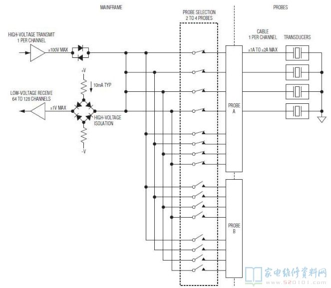 ●两组8通道SPST高压模拟开关