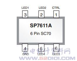 概述:SP7611A采用SC70封装,可驱动4颗LED,提供40mA的输出电流。为灌电流型降压led软件驱动器。
