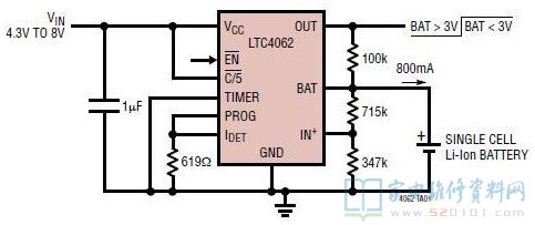 概述:LTC4062采用10管脚小尺寸DFN封装(3mm×3mm),高度0.75mm;工作温度范围为0℃~+85℃。它可以用插头式(AC/DC适配器)或USB端口供电;最大充电电流可达1A;预设浮充电压为4.2V±0.35%;内有用于监控电池电压的低功耗电压比较器;有多种终止充电方式:可设置时间的定时器来控制终止充电;在充电电流小于设定的电流时终止充电;由用户根据充电状态指示来终止充电;完善的充电程序(算法);在电压低于2.9V时实现涓流充电;在电压大于2.9V时实现大电流恒流充电;当电池电压接近4.2V时改为恒压充电;有充电过程指示(LED亮表示充电、LED灭表示充电终止,LED闪亮表示电池未装好或有故障);有智能启动(Smart Start),可延长电池寿命;有关闭控制,在关闭状态时耗电20μA(典型值),电池耗电小于2μA;充电电流可设定;终止充电时的电流阈值可设定;内部有自动热调节来控制最大的充电率,不会有过热风险;无须外部电流检测电阻及阻塞二极管;外围元器件少;有设定全电流充电(大功率)及1/5电流充电(小功率)选择以满足不同充电电源及电池容量的需要。