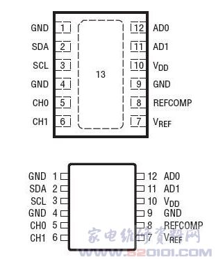 概述:LTC2305采用引脚兼容的4mmx3mmDFN12脚和MSOP 12脚封装,能进行高达400kHz的I2C数据传送,允许高达14ksps的采样速率。数据可以通过3V或5V逻辑传送。通过一个 I2C 兼容两线接口通信,在 1ksps 输出速率时仅消耗 1.5mW 功率。把两个单端输入数字化。