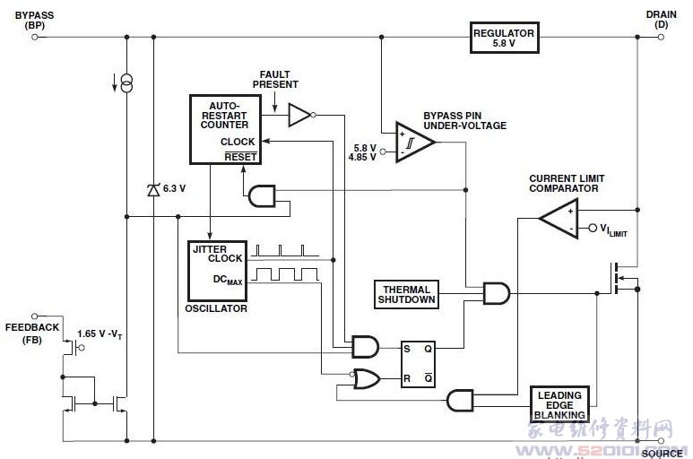概述:LNK305采用8引脚DIP或SMD封装。集成了一个700 V的功率MOSFET、振荡器、简单的开/关控制电路、高压开关电流源、频率调制、逐周期的电流限制及过温保护电路。器件在启动及工作期间的功率消耗直接由漏极引脚的电压来提供,因此在BUCK及反激式转换器中可节省偏置供电的相关电路。完全集成的自动重启动电路在短路、开环的故障情况下,安全地限制了输出功率,减少了元器件的数目,降低了在系统级用于负载保护电路的成本。如有必要,IC的自供电操作允许使用没有安规要求的光耦器作为电平转换,以改善输入电压调整率及负载调整率。 MDCM的平方为175 mA,CCM的立方为280 mA。
