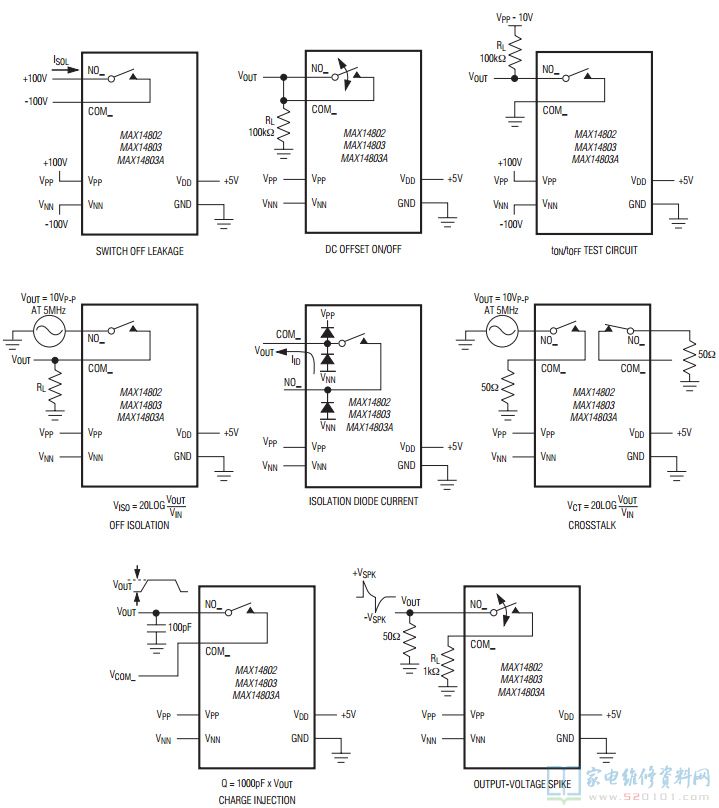 ●在5MHz(RL=50Ω)下,关断隔离为-77dB(典型值)