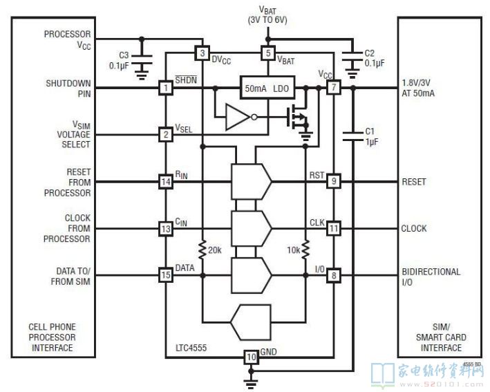 SIM电源:1.8V/3V(在50mA)