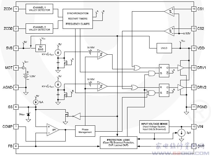 ·自动切相,在轻负载下仅有一个通道运作,将功耗减至最小。